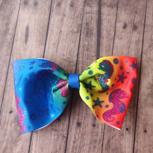 Rainbow Animal Print Double Tux Bow